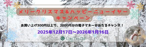 300円以上のお買い物で、コンテン堂で利用できる電子マネー2,000円分が当たるチャンスです!